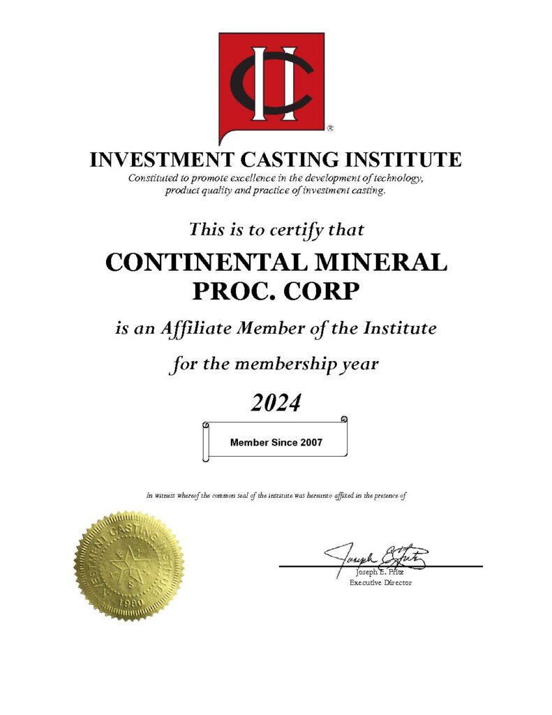Continental Mineral is an active member of several trade organizations including the Investment Casting Institute, the American Ceramics Society and the Zirconium Industry Association.